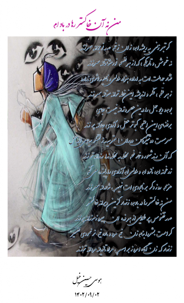 تصویری که در بالا شعر هوسی حسین خیل را مزین ساخته ، اثر شمسیه حسنی هنر مند افغان است که به سویهٔ بین المللی در ممالک مختلف جهان شناخته شده است. این تنها اثر شمسیه در ایتالیا است، ولی امیدواریم که به زودی کارهای دیگر تحسین بر انگیز اورا ببینیم: پیام او برای حقوق زنان افغان مهم است، این پیام امید به تولد دوباره پس از یک دوره غم انگیز است. امید به پیدا کردن هویت خودی کسی، رویاهای کسی با پرواز در نور به مثابهٔ یکی از خلاقیت های اوست که در مجلهٔٔ متروپولتن در ایتالیه به چاب رسیده است.