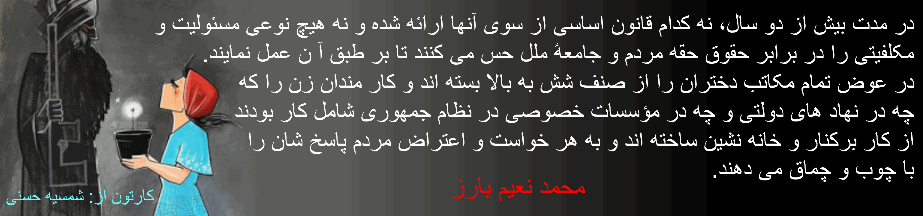 اما در طول بیش از چهل سال زیاد شدن تحصیل کرده های زن و مرد با و با استفاده از روابط اطلاع رسانی جمعی در حدی از آگاهی و تجربه رسیده اند که دیگر به هیچ وجه نمی شود مردم را از مبارزه اصلی و بر حق شان منحرف ساخت، مثال برجسته همین مبارزات زن و مرد آگاه ایران است و جهانیان دریافته اند که با هر نوع بکار برد زور و با هنجارهای پدر سالار نمی شود رژیم آخوندی به حاکمیت ادامه دهد.زیرا در یک جمله بقای دولت ها بمثابه حاصل وفاق افراد هر جامعه است.برگردیم به اصل موضوع: