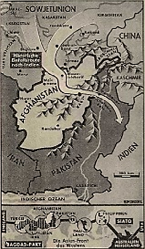 قریب شش سال بعد از پادشاهی، پادشاه جوان، اعلیحضرت محمد ظاهر شاه، “جنگ دوم جهانی آغاز یافت. این رژیم پادشاهی، بر حسب عنعنه، از سیاست “بی طرفی” در جنگ دوم جهانی نیز پیروی نموده، کشور را از آسیب جنگ، بدور نگهداشته است، اما در جریان جنگ، شرایط برای رشد و توسعۀ مناسبات، چندان مساعد نبوده است. ختم جنگ دوم جهانی بار دیگر، مناسبات بین المللی را از ریشه تغییر داده است. این پادشاهی بتدریج، پس از اینکه بعضویت سازمان ملل متحد پذیرفته شد و در تعمیق و توسعۀ مناسبات با کشور های جهان و سازمان بین المللی سهم فعال داشته است، در اصول “بی طرفی”، کلمۀ “مثبت” را هم علاوه نموده، اصطلاح “بی طرفی مثبت” را، بزبان آورده است. این پادشاهی که به “جنبش عدم انسلاک” نیز پیوسته است، از اصول “همزیستی مسالمت آمیز” پیروی نموده است.همزیستی مسالمت آمیز، مناسبات را بین کشور های دارای رژیم های مختلف، ممکن ساخته است. درین اصول، مناسبات بین کشور “پادشاهی” افغانستان با کشور های دارای رژیم های متفاوت، عیار گردیده بود. با سقوط رژیم سلطنتی (۱۹۷۳م) و بتعقیب آن، با “سقوط رژیم جمهوری پنجساله”، کشور با بحران خونین و دوامدار درگیر است، که در حقیقت چهرۀ یک سیاست خارجی، مبتنی بر اصول عنعنوی، چنان مکدر گردیده است، که شناخت و تعریف دقیق آنرا، دشوار ساخته است. بدینترتیب، ریشه های اصلی سیاست “بی طرفی” را، صاحبنظران در مراحل قبل از “جنگ اول جهانی” استدلال می نمایند. این موضعگیری را پادشاهان زمان، حاکمیت خاندان “سدوزائی”، در شرایط و احوالی اتخاذ نموده اند، که در سطح بین المللی، رقابت های قدرت های بزرگ هم عصر آنها، جریان داشته است. مجلۀ “شپیگل یکی از رویداد ها را، در همان شمارۀ ۵۱ سال ۱۹۵۵م، هم چنان، با نشر این گرافیک می نویسد: «افغانستان “نیوترال”، نتیجۀ یک ماجرای تأریخی است، که در آن، در پهلوی جنرالان روسی، “اجنت های” خدمات مخفی و قهرمانان آزادی افغان، و هم چنان “الماس” مشهور دنیا، بنام “کوه نور”، نیز نقش داشته است.» (صفحه ۳۹)(“الکسندر ا.” و “ناپیلیون ا.” در “تلسیت” (۱۸۰۷م): “دستآورد تأریخی بوده است …) در هر یک از مراحل مختلف از اهمیت “ستراتیژیک” این سرزمین نام برده شده است. مرحلۀ بین جنگ “جهانی” اول (۱۹۱۴م تا ۱۹۱۸م) و جنگ “جهانی” دوم (۱۹۳۹م – ۱۹۴۵م)، نیز پر حادثه بوده است. طوری که قبلاً تذکر داده شده است، الی سومین جنگ “افغان –انگلیس”، این کشور در یک مدت نسبتاً طولانی، استقلال آنرا در عرصۀ سیاست خارجی نیز از دست داده است، در همان دوره است، که خط نام نهاد “دیورند”، بحیث سرحد “جدائی” بین “هند برتانوی” و “پادشاهی افغانستان” علامگذاری می گردد. بدینترتیب از یک طرف، قسمتی از سرزمین های تحت تسلط “امپراتوری درانی” را از دست می دهد، از جانب دیگر، وضعیت کشور، بیک کشور “محاط به خشکه” مبدل گردیده است. در عین حال، طوری که قبلاً هم تذکار یافته است، در اثر مقابله های بین المللی و منطقوی، دو قدرت بزرگ آنوقت، “برتانیه” و “روسیۀ” تزاری، این کشور، بعنوان “سرزمین حائل” بین دو قدرت بزرگ تعیین گردیده است. درین زمان “هند برتانوی”، در مقایسه با “روسیۀ تزاری” بر دربار کابل، از نفوذ بیشتر، برخوردار بود است. بالمقابل، جانب انگلیس علاوه از اینکه، درۀ “خیبر” را، بنابر اسناد دیرینۀ تأریخی، بعنوان دروازۀ دخول به “نیم قارۀ هند” می نگریسته است، علاوتاً علناً تبلیغات مبنی بر اینکه، “خرس سفید قطبی روس”، میل آب بازی در آبهای گرم “خلیج و بحر هند”، از خود نشان می دهد. در “گرافیک” منتشره در “شپیگل”، خطر و واهمۀ، که قدرت های بزرگ از خود نشان می داده اند، از یک جهت نشان داده شده است. در حقیقت واهمه و بدگمانی ها، از هر دو جانب، حکایت شده است. علی الرغم همه دشواری ها، آنطوری که “شپیگل” می نویسد، “پادشاهان” افغان هم، با درک این وضعیت، برای حفظ حاکمیت درین کشور، از استعمال یکی علیه دیگر کار گرفته اند.»